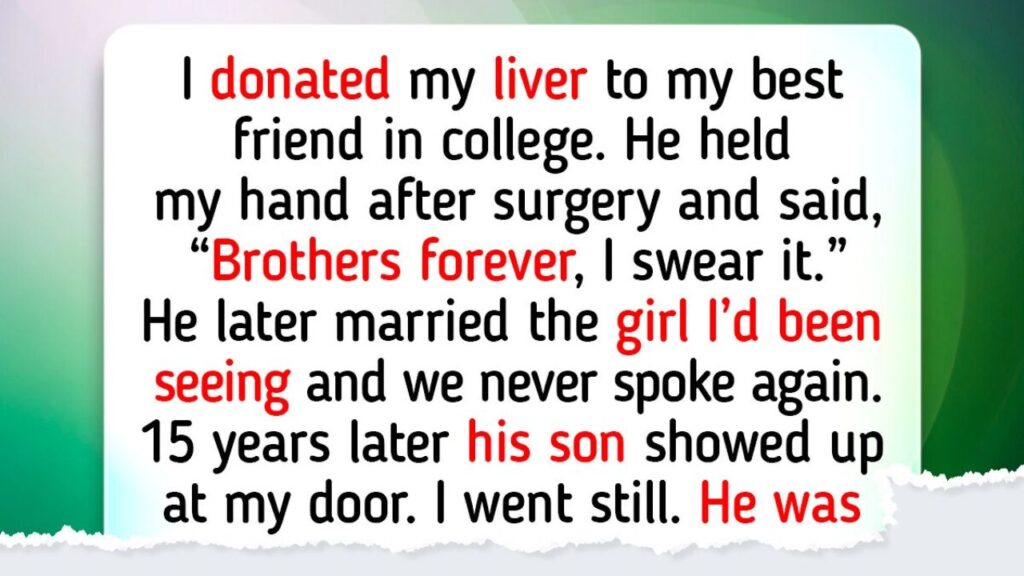 In college, I donated part of my liver to my best friend. After the surgery, he held my hand and told me, “Brothers forever, I swear it.” Later, he married the woman I had been seeing, and we never spoke again.